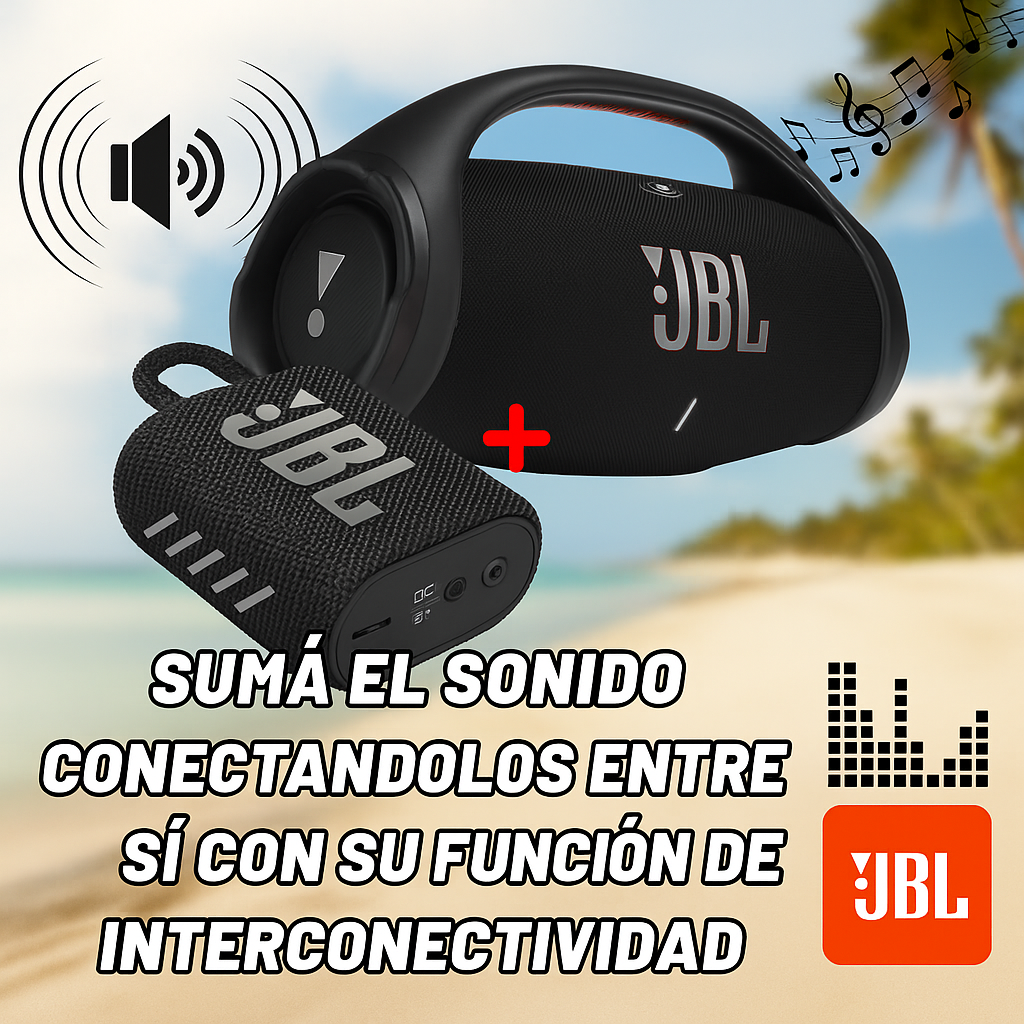 Este combo es simple: la Boombox 3 es para cuando querés que la música mande (asado, terraza, pileta, quincho), y la Go 4 es para lo cotidiano (plaza, oficina, gym, viajes). En vez de elegir, te llevás las dos soluciones en una sola compra. 🔥